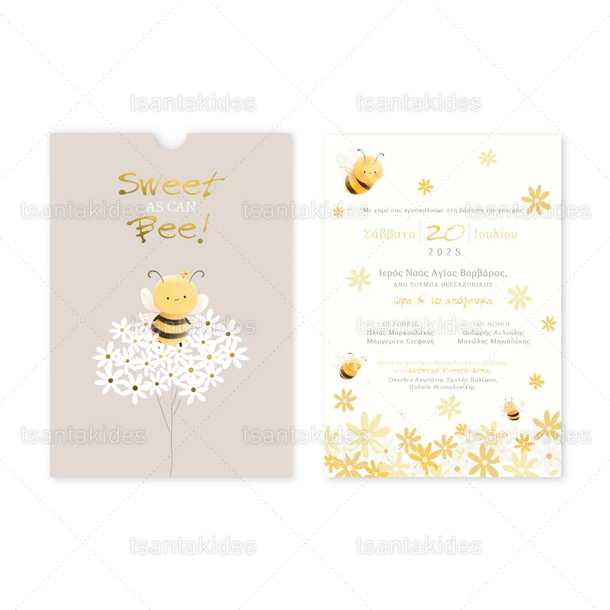 Προσκλητήριο βάπτισης για Αγόρι εκτυπωμένο με θέμα Honey Bee