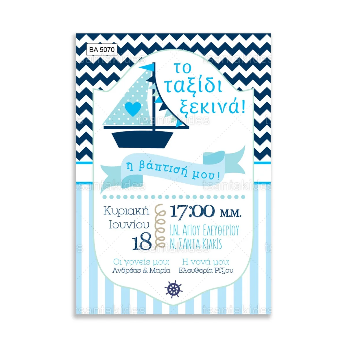 Προσκλητήριο βάπτισης για αγόρι εκτυπωμένο με θέμα Sea