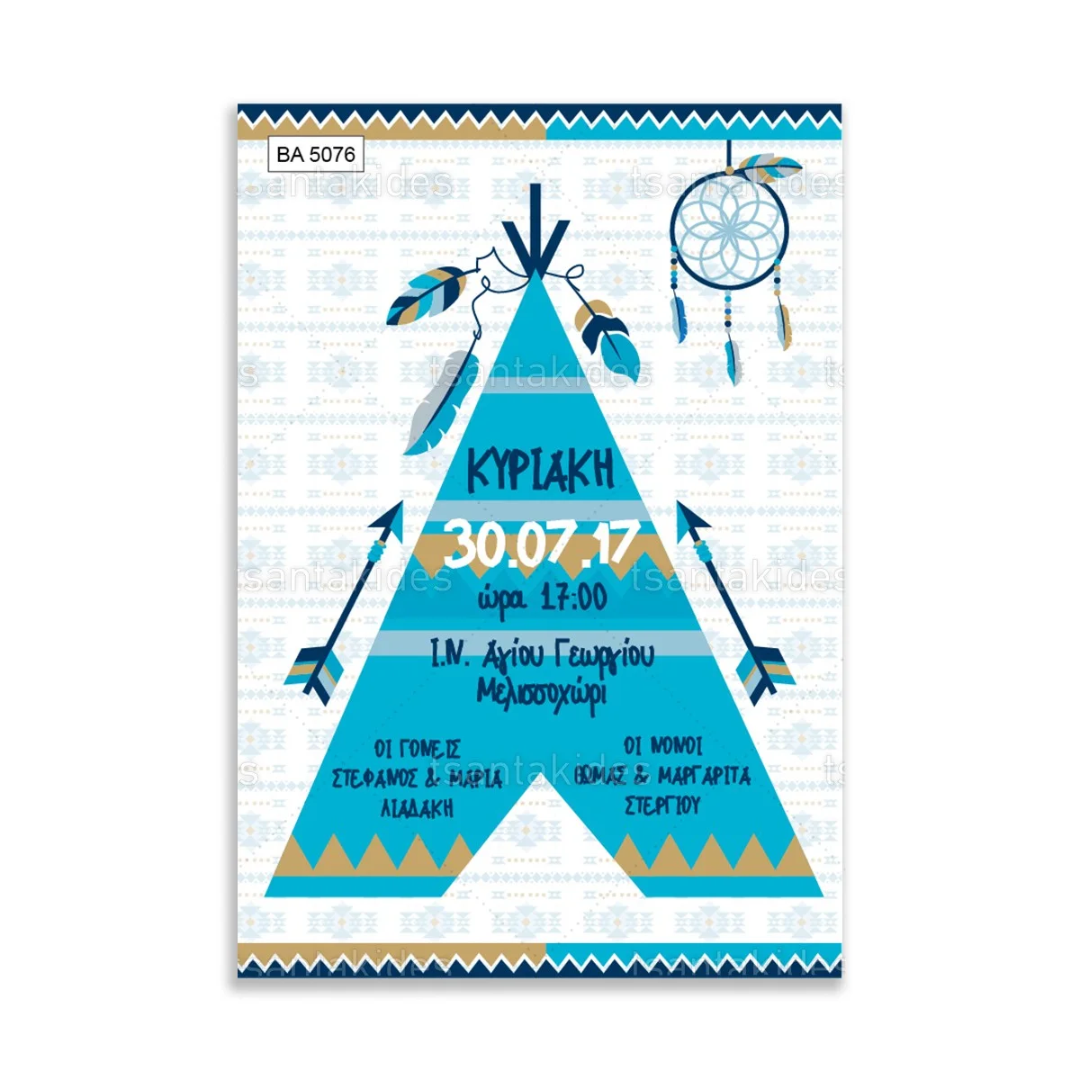 Προσκλητήριο βάπτισης για αγόρι εκτυπωμένο με θέμα Ινδιάνος