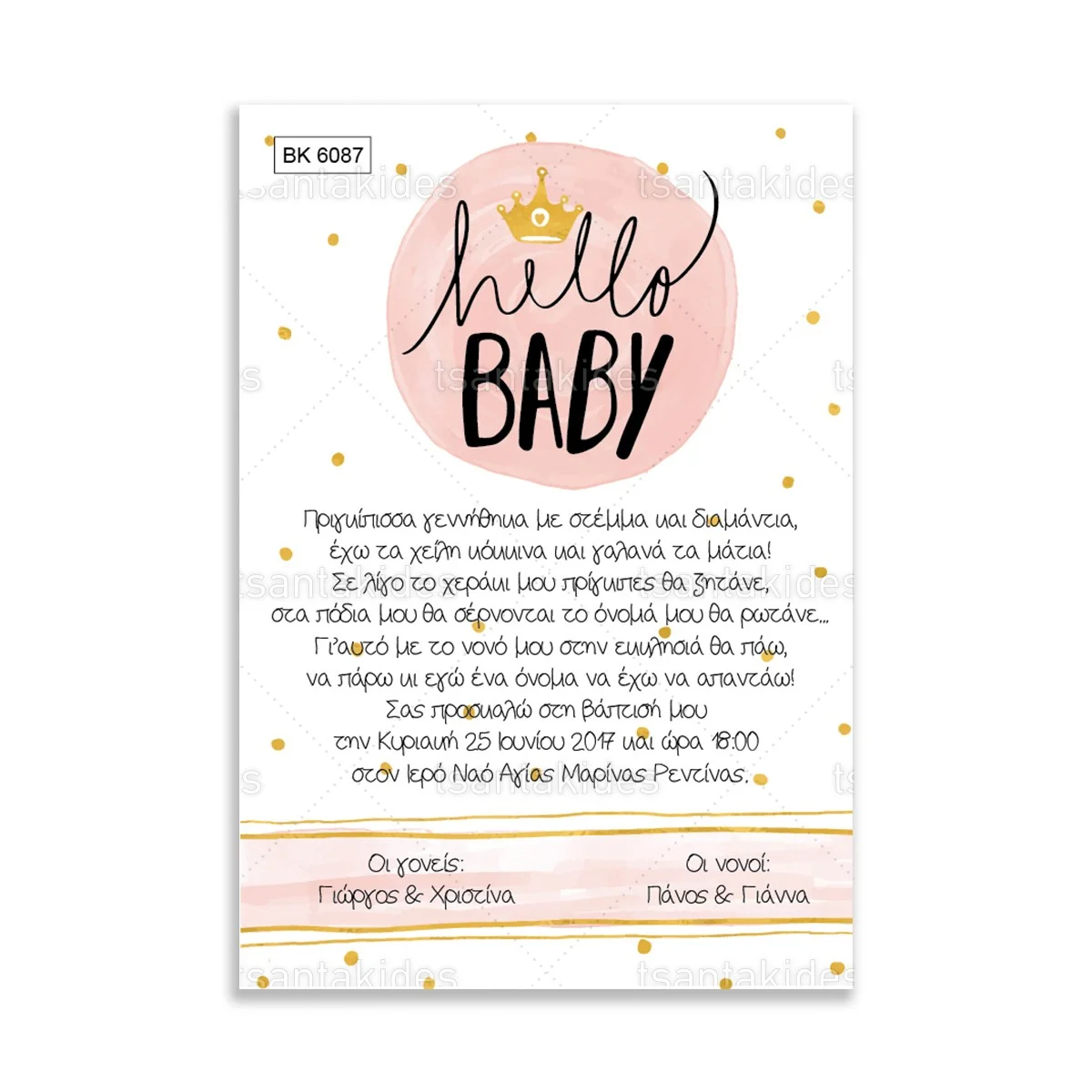 Προσκλητήριο βάπτισης για κορίτσι εκτυπωμένο με θέμα Baby