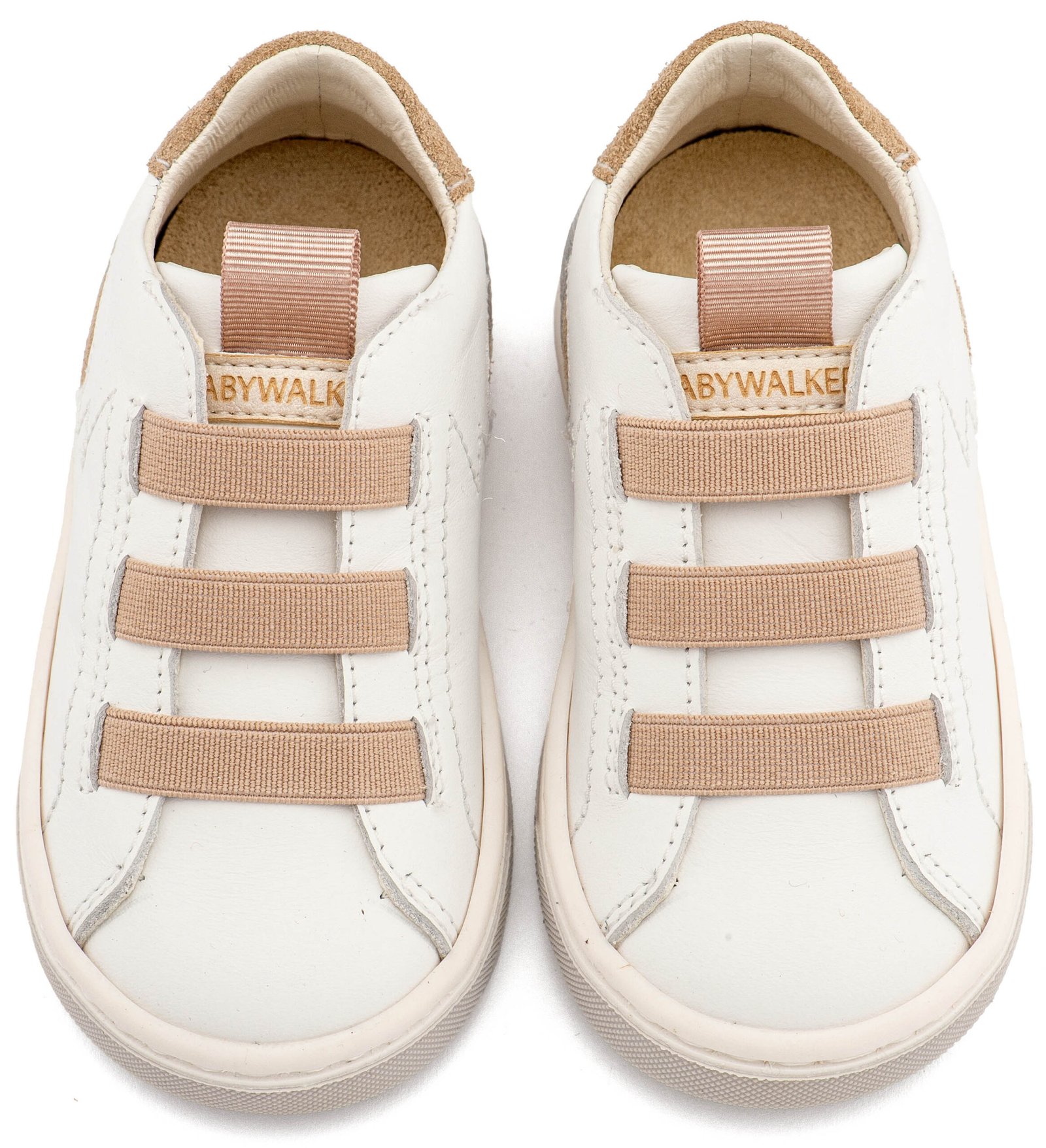 Δερμάτινο Sneaker Παντοφλέ με Λαστιχάκια σε Λευκό Μπεζ Χρώμα