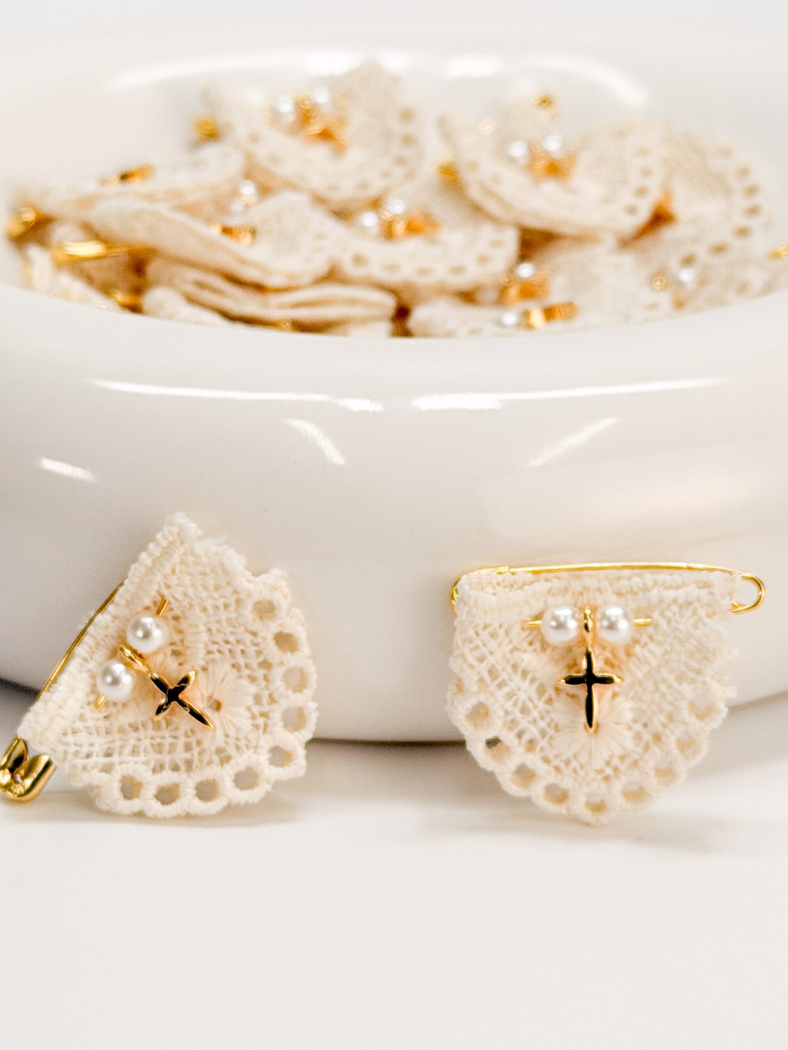 Μαρτυρικό πέτο με δαντέλα,επιχρυσωμένο σταυρό και πέρλες.