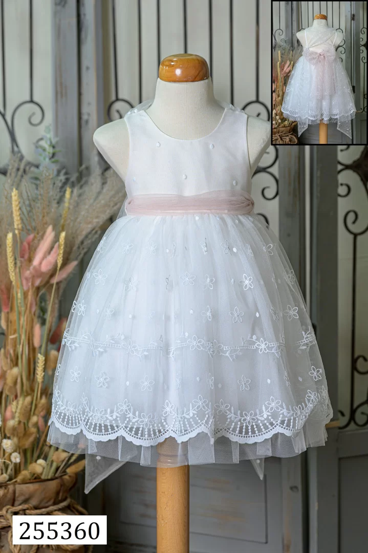 Ρομαντικό και κομψό βαφτιστικό φόρεμα για κορίτσι, φτιαγμένο από φίνα υφάσματα με δαντέλες, τούλι και υπέροχες λεπτομέρειες. Ιδανικό για μια παραμυθένια εμφάνιση που θα κλέψει τις εντυπώσεις!