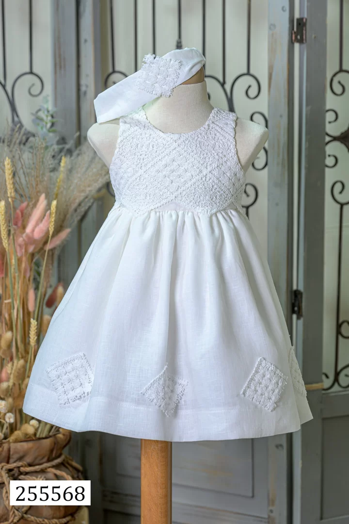 Ρομαντικό και κομψό βαφτιστικό φόρεμα για κορίτσι, φτιαγμένο από φίνα υφάσματα με δαντέλες, τούλι και υπέροχες λεπτομέρειες. Ιδανικό για μια παραμυθένια εμφάνιση που θα κλέψει τις εντυπώσεις!
