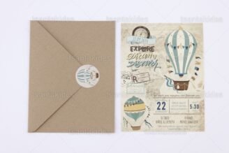 €25Προσκλητήριο βάπτισης παπυράκι εκτυπωμένο με θέμα το αερόστατο