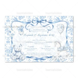 €7Προσκλητήριο βάπτισης για αγόρι εκτυπωμένο με θέμα Toile
