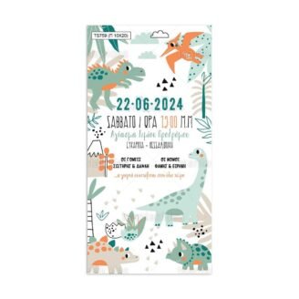 Προσκλητήριο βάπτισης παπυράκι εκτυπωμένο με θέμα Dinosaurs