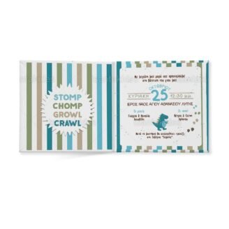 Προσκλητήριο βάπτισης παπυράκι εκτυπωμένο με θέμα τα δεινοσαυράκια