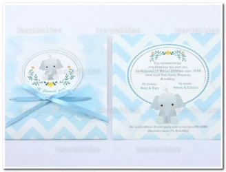 Προσκλητήριο βάπτισης για αγόρι εκτυπωμένο με θέμα Baby Elephant
