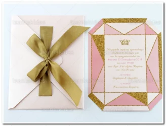 Προσκλητήριο βάπτισης παπυράκι εκτυπωμένο με θέμα Dusty pink fairytale