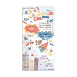 Προσκλητήριο βάπτισης παπυράκι εκτυπωμένο με θέμα Super power girl