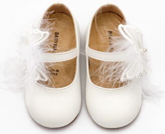 Δερμάτινο Γοβάκι Διακοσμημένο με Χειροποίητο Τούλινο Διακοσμητικό σε Λευκό Χρώμα