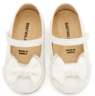 Δερμάτινο Γοβάκι Μονή Μπαρέτα με Διακοσμητική Σατέν Φιόγκο σε Λευκό Χρώμα