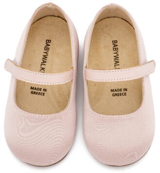 Δερμάτινο Γοβάκι Μονή Μπαρέτα με Διακοσμητική Σατέν Φιόγκο σε Εκρού Ροζ Χρώμα