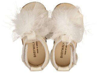 Δερμάτινο Πέδιλο Διακοσμημένο με Chiffon Πον Πον από Δέρμα Πέρλα σε Εκρού Χρώμα