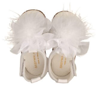 Δερμάτινο Πέδιλο Διακοσμημένο με chiffon Πον Πον από Δέρμα Νάπα σε Λευκό Χρώμα